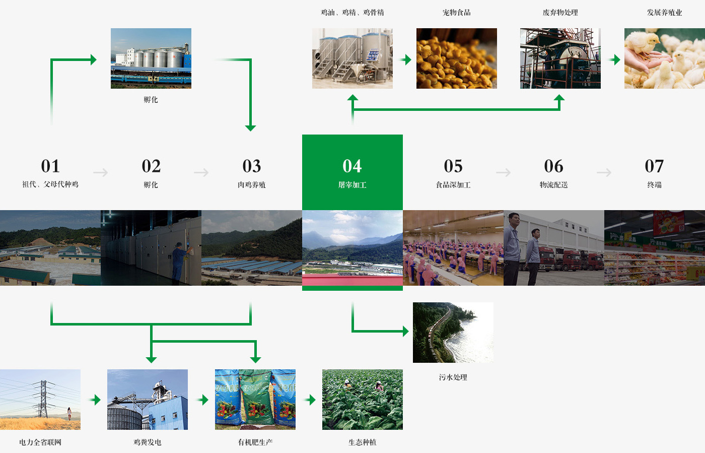 與國內養雞行業普遍采用的“公司+基地+農戶”的經營模式不同,圣農堅持“自繁、自養、自宰”的全產業鏈生產模式,涉及飼料廠、祖代父母代種雞場、孵化廠、商品代肉雞場、宰殺廠均為公司自有。 |