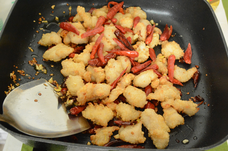 • 材料: 圣農鹽酥雞1包 干紅辣椒15個 大蒜瓣3個 生姜4片 腰果20個 花椒3茶匙 食用油2茶匙 步驟: 干紅辣椒切丁,蒜瓣、生姜切末 鹽酥雞炸好備用 將蒜蓉、姜末倒入中火油鍋煸香,然后放入辣椒丁、花椒 放入圣農鹽酥雞、腰果,翻炒片刻即可出鍋
